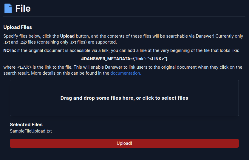 The File Connector indexes user uploaded files. Currently supports.txt, .pdf, .docx, .pptx, .xlsx, .csv,