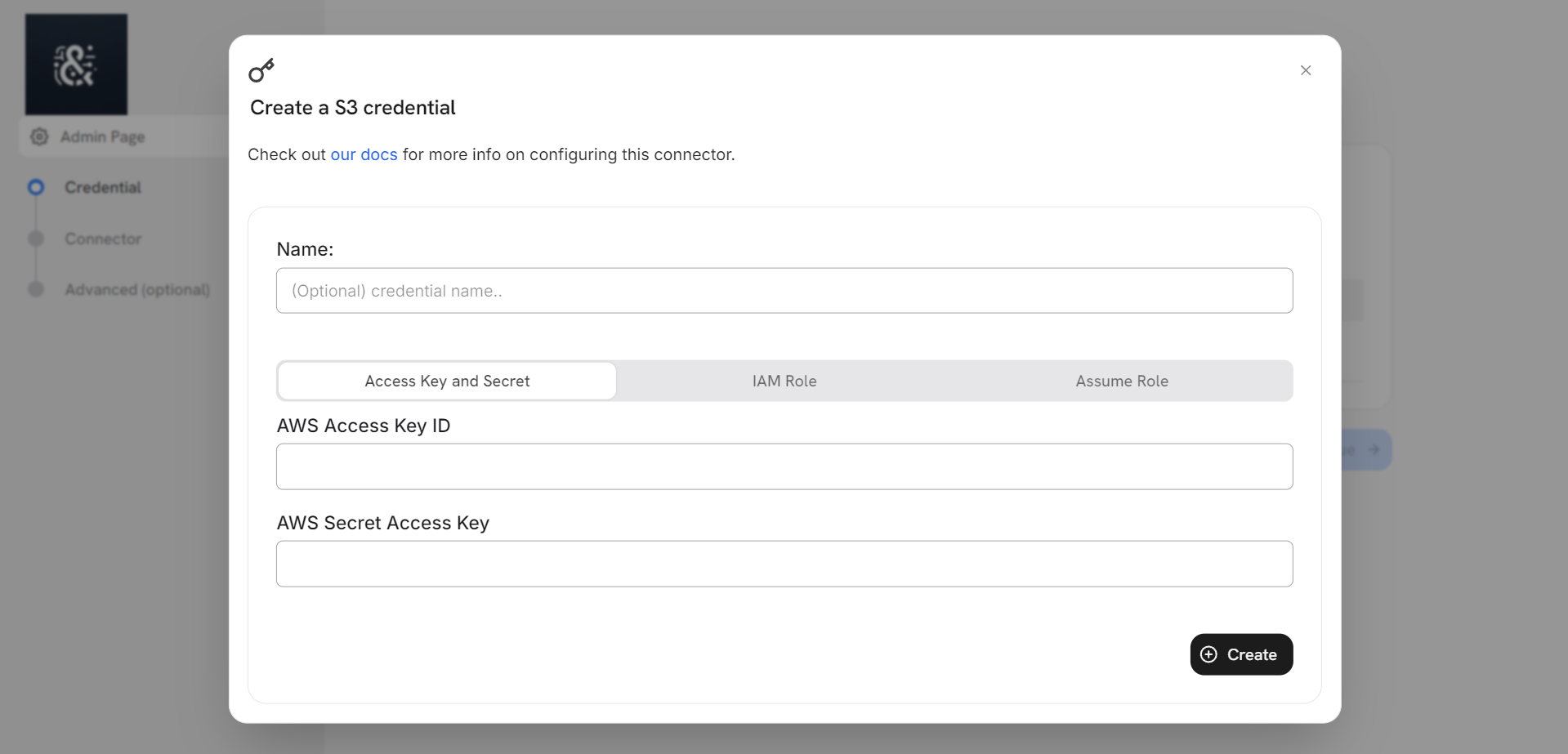 When configuring the S3 connector in Sigma, you’ll enter your credentials as follows:- AWS Access Key ID: Paste the Access Key ID you copied from AWS